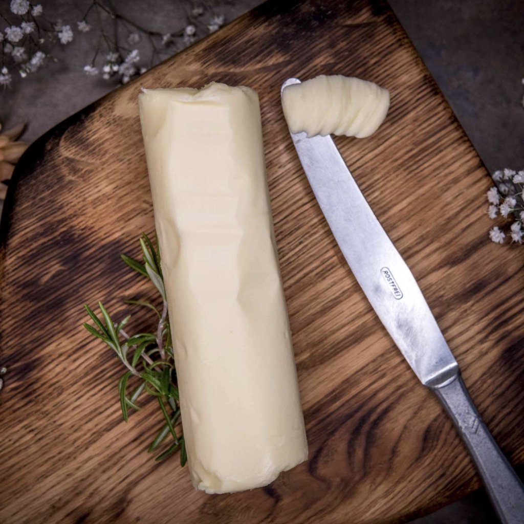 Čerstvé gazdovské máslo je vyrobené klasickým způsobem stloukáním smetany z kravského mléka.