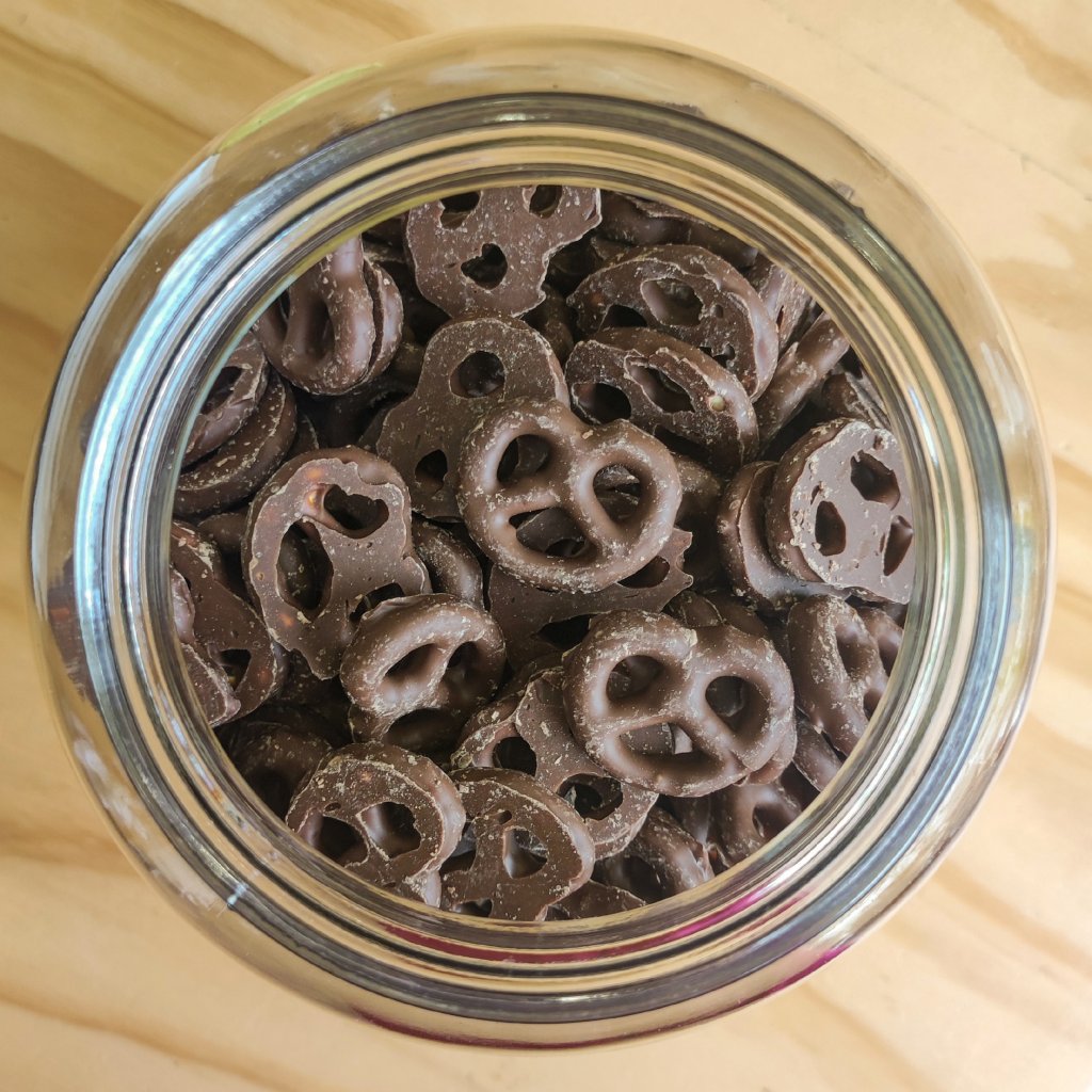 preclíky 50% (pšeničná mouka, sůl, rostlinný olej slunečnicový, droždí, pšeničná sladová mouka, regulátor kyselosti E524), hořká čokoláda 50% (cukr, kakaová hmota, kakaové máslo, emulgátor sojový lecitin E322, přírodní vanilkové aroma).
