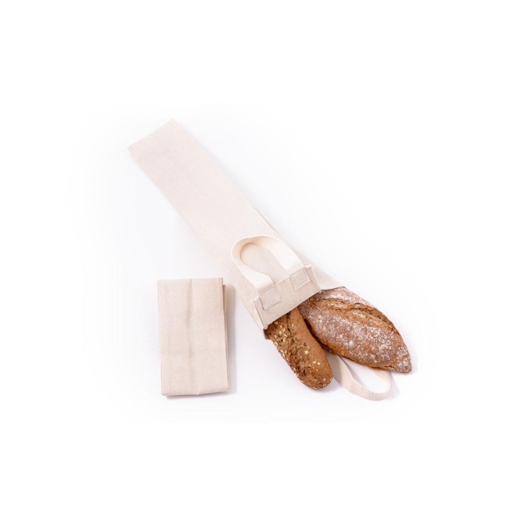 Podlouhlý pytlík ze silnějšího plátna z biobavlny cíleně určený na bagety.