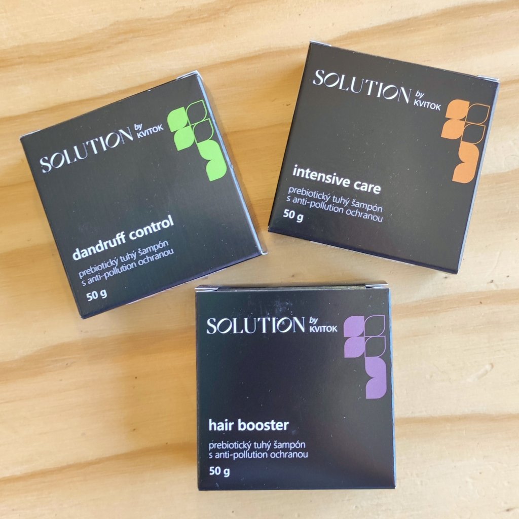 Solution je prémiová verze přírodní kosmetiky Kvitok – o kapku účinnější, komplexnější, ukrytá do luxusnějšího kabátku z tmavého skla a dřeva.